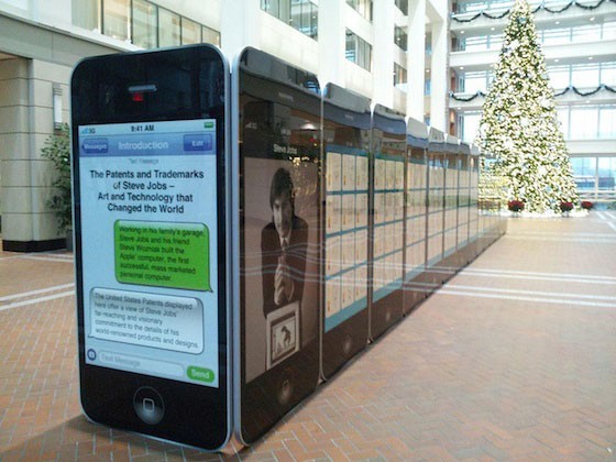 美專(zhuān)利局舉行喬布斯紀念展 巨型iPhone作展板(圖)