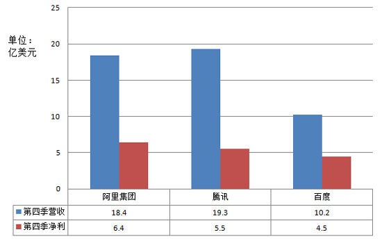 阿里巴巴集團、騰訊和百度去年第四季度業(yè)績(jì)